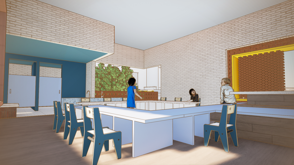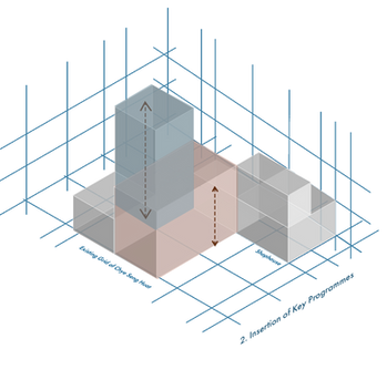 Synthesising the key design strategies from the material concept of interlocking to create a continuous pathway throughout the Brick Canvas that allows users to form visual connections between the interlocking programmes. The use of vertical misalignment and different pathways aims to create gaps and nooks made for the children, creating a sense of playfulness as they traverse through the art education centre.
